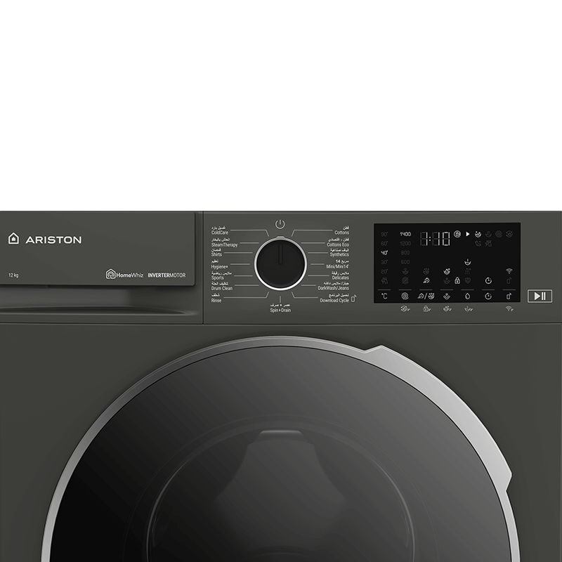 تحكم بغسالتك في أي وقت ومن أي مكان باستخدام تطبيق أريستون. شغّل الدورة وأوقفها وتتبعها أو حمّل برامج جديدة بكل سهولة.