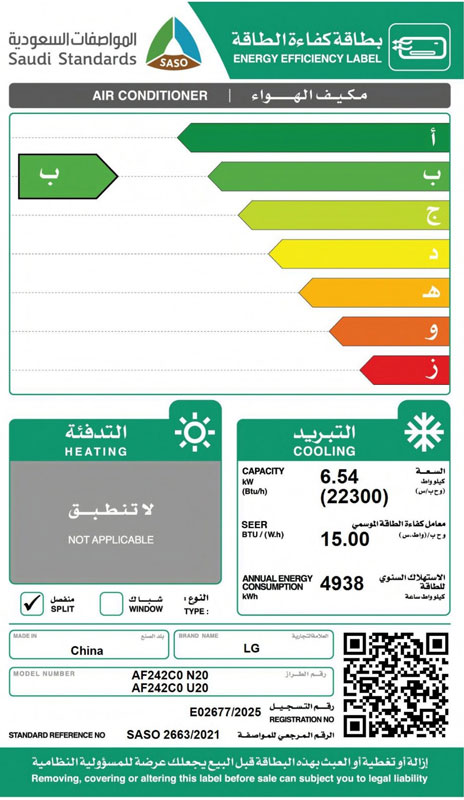 - الضمان: ضمان أساسي لمدة 2 سنوات وضمان الكومبرسر (الضاغط) لمدة 10 سنوات.