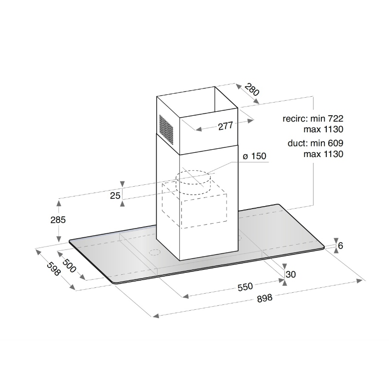 - شفاط مطبخ سقفي بكفاءة طاقة: B