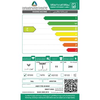 With a washing capacity of 11kg, the Ariston washing machine is an ideal choice for large families or individuals who need to wash large quantities of clothes at one time. The washing machine’s advanced cleaning system adds to its compactness